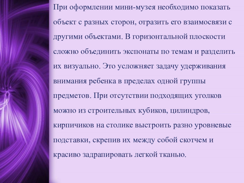 Требуется проявить большие дизайнерские способности, что музей привлекал к себе внимание детей.