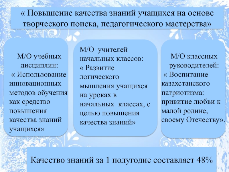 Качество знаний за 1 полугодие составляет 48%