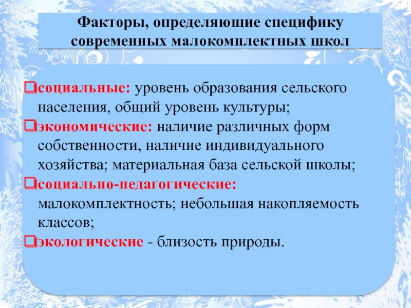 Факторы, определяющие специфику современных малокомплектных школ