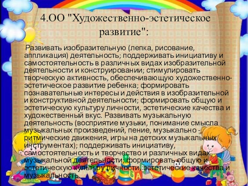 Слайд 6 4.ОО "Художественно-эстетическое развитие":