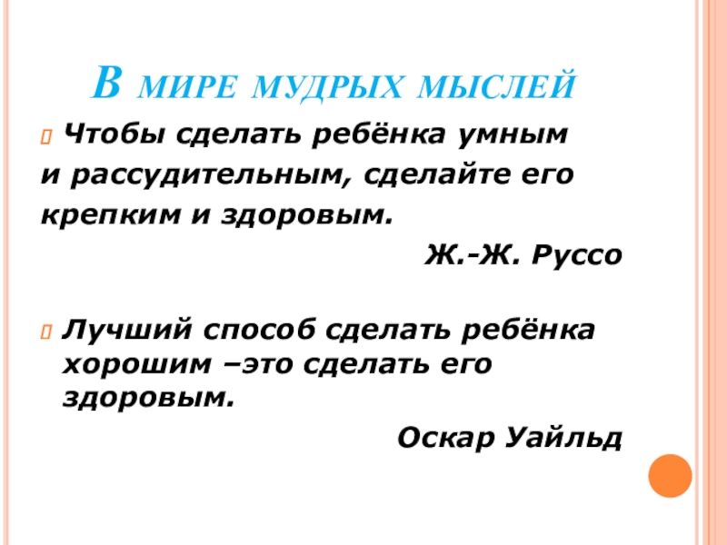 Лучший способ сделать ребёнка хорошим –это сделать его здоровым.