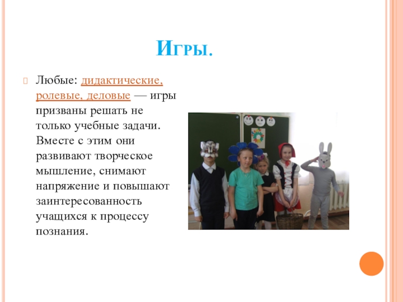 Любые: дидактические, ролевые, деловые — игры призваны решать не только учебные задачи. Вместе