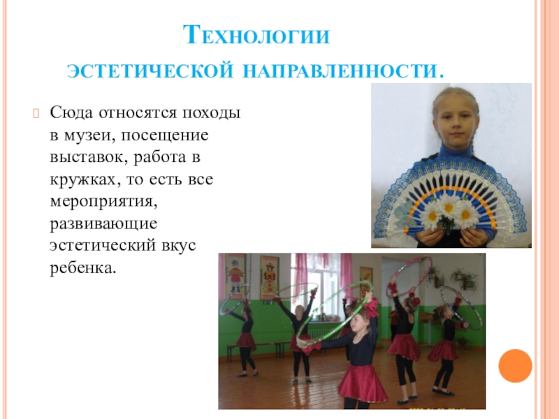 в кружках, то есть все мероприятия, развивающие эстетический вкус ребенка.