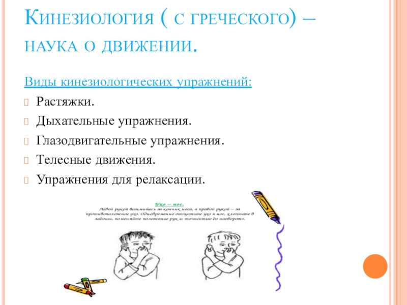 применяется на уроках, где ученик много пишет. Это недолгая разминка