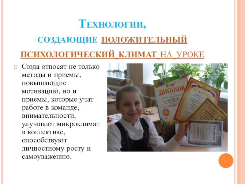 Слайд 21Технологии, создающие положительный психологический климат на уроке