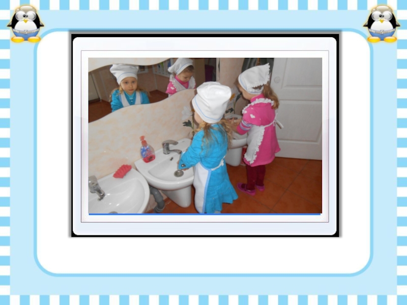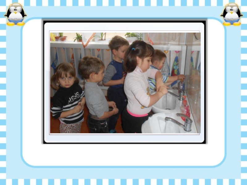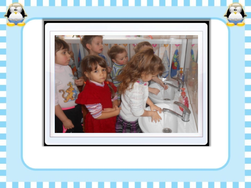 Слайд 10Перед тем, как сесть за стол дети идут мыть руки с
