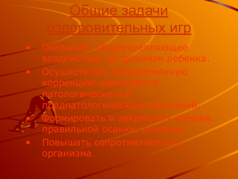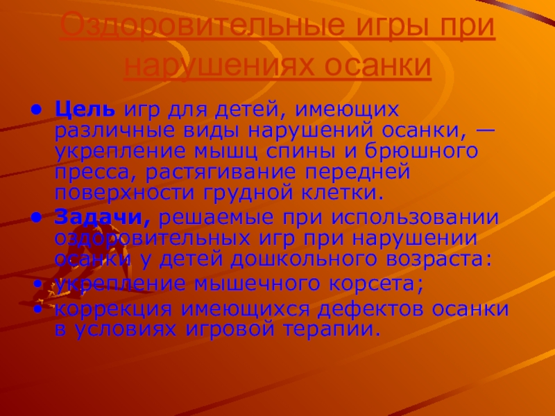 Задачи, решаемые при использовании оздоровительных игр при нарушении осанки у детей дошкольного возраста: