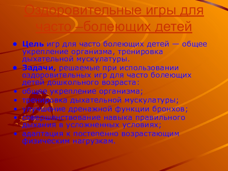 Слайд 37Оздоровительные игры для часто –болеющих детей