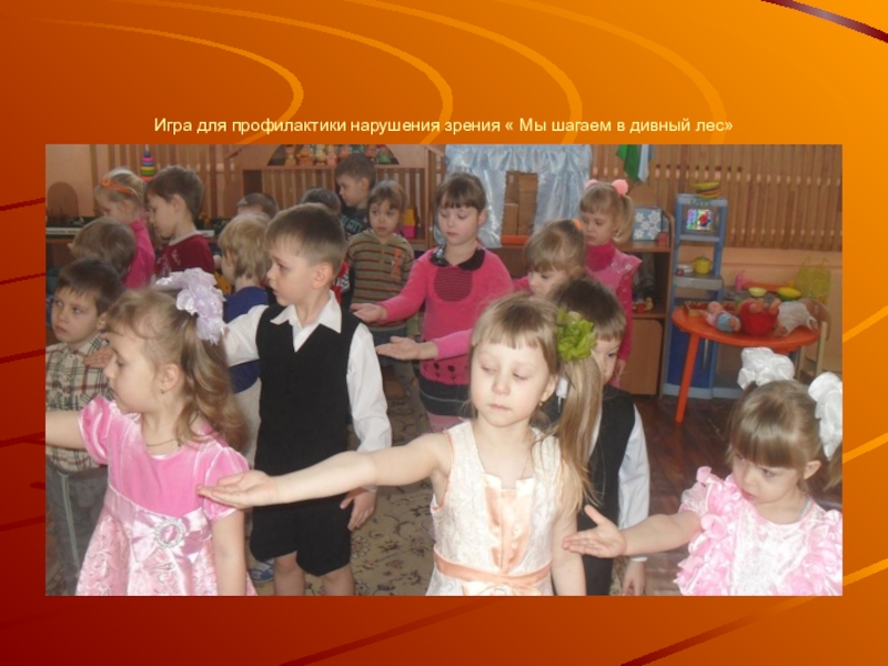 Слайд 45Игра для профилактики нарушения зрения « Мы шагаем в дивный лес»
