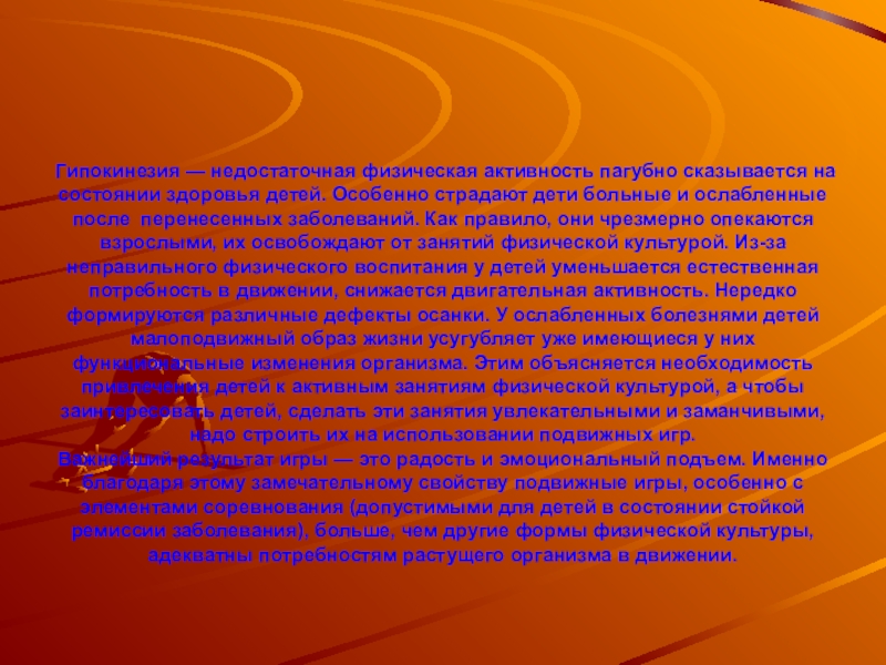 Слайд 31Гипокинезия — недостаточная физическая активность пагубно сказывается на состоянии здоровья детей.