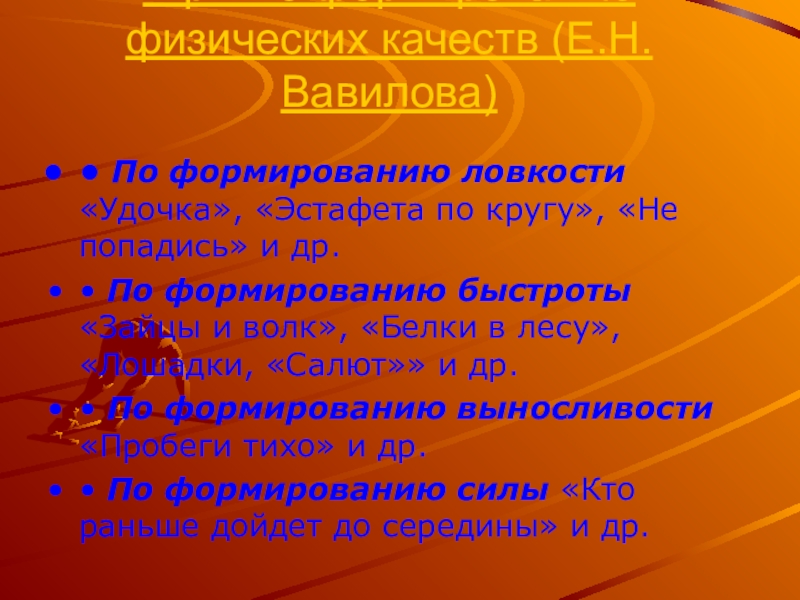 Слайд 4игры по формированию физических качеств (Е.Н. Вавилова)