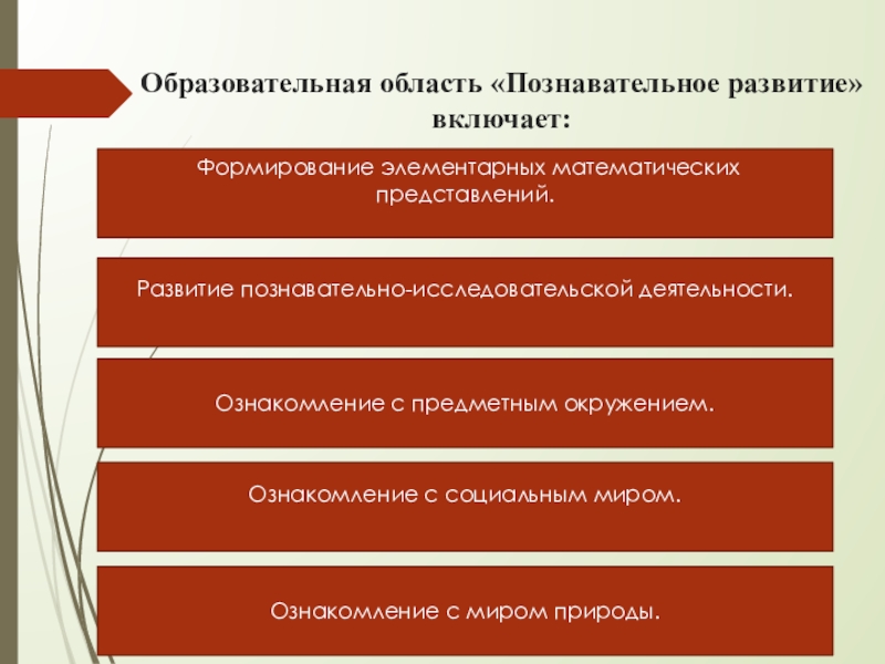 Слайд 6Образовательная область «Познавательное развитие» включает: