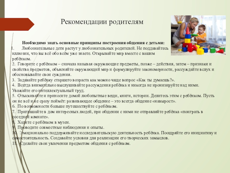 Необходимо знать основные принципы построения общения с детьми: