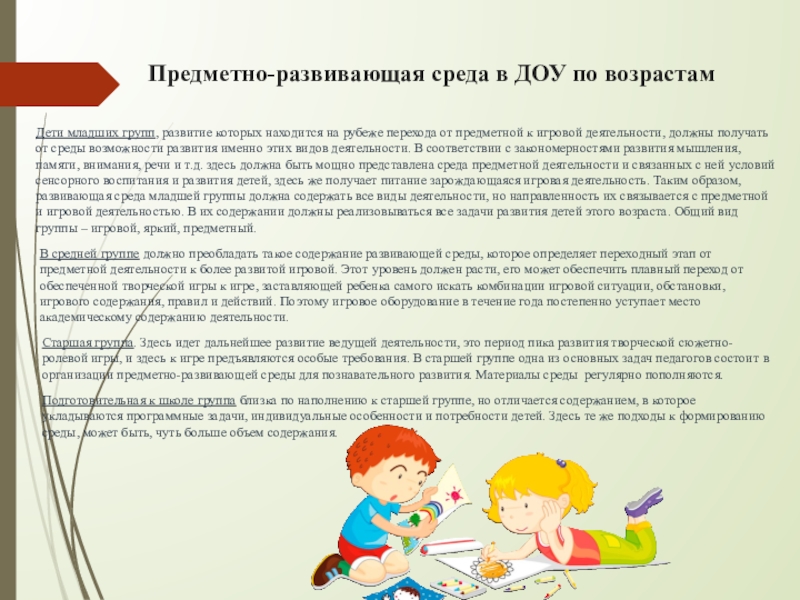 Слайд 13Предметно-развивающая среда в ДОУ по возрастам