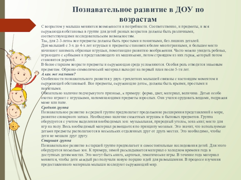 Слайд 12Познавательное развитие в ДОУ по возрастам