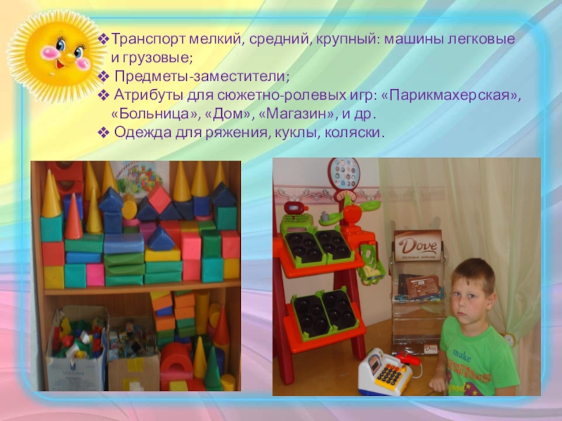 Атрибуты к обыгрыванию, игрушки;