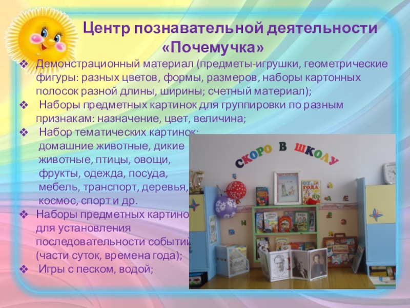 Слайд 8 Центр познавательной деятельности «Почемучка»