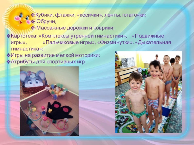 утренней гимнастики», «Подвижные игры», «Пальчиковые игры», «Физминутки», «Дыхательная гимнастика»;