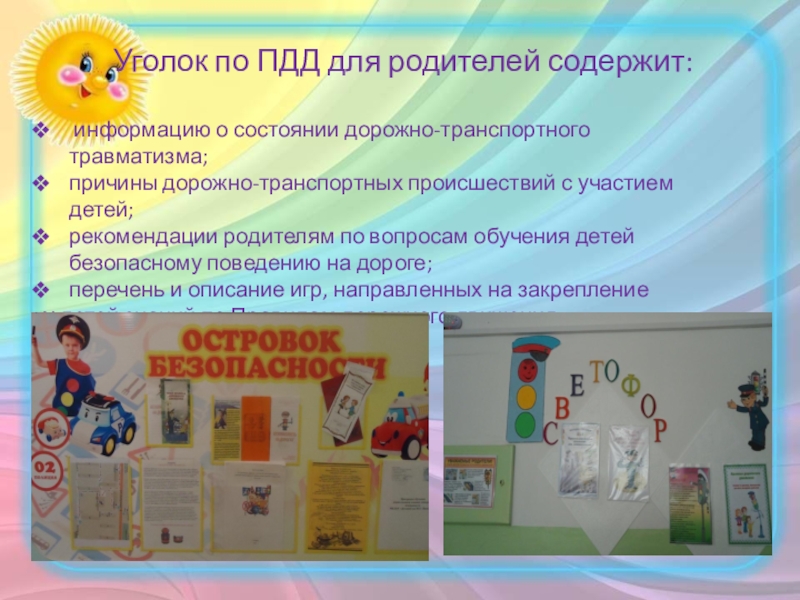 Уголок по ПДД для родителей содержит: