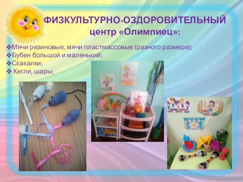 Слайд 10Мячи резиновые, мячи пластмассовые (разного размера);