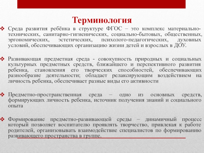 Среда развития ребёнка в структуре ФГОС – это комплекс материально-технических, санитарно-гигиенических,