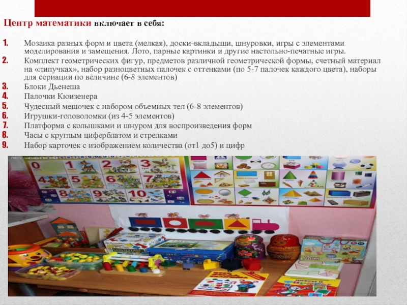 Слайд 16Центр математики включает в себя: