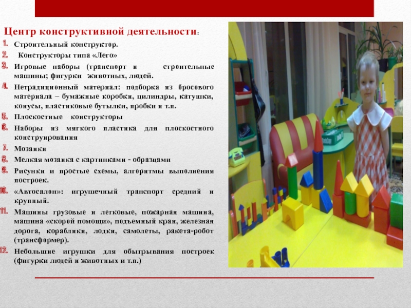 Слайд 25Центр конструктивной деятельности: