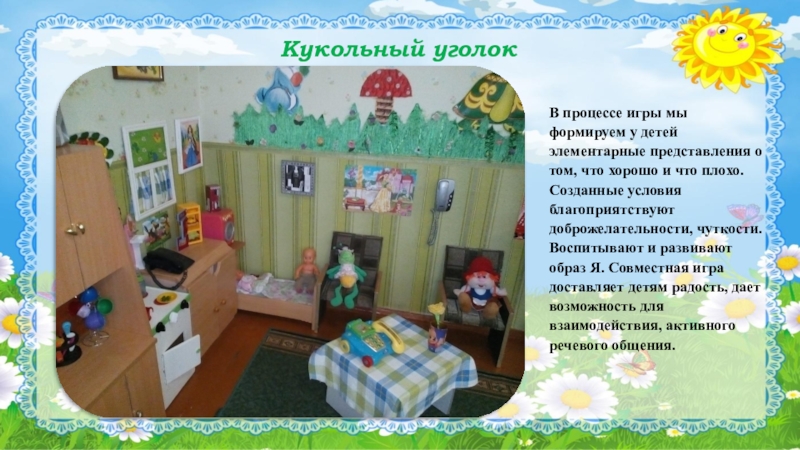 Слайд 8Кукольный уголок