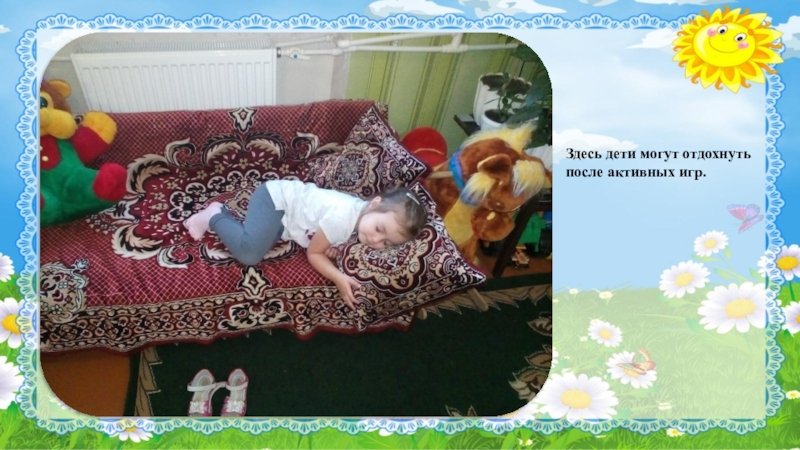 Слайд 39Здесь дети могут отдохнуть после активных игр.