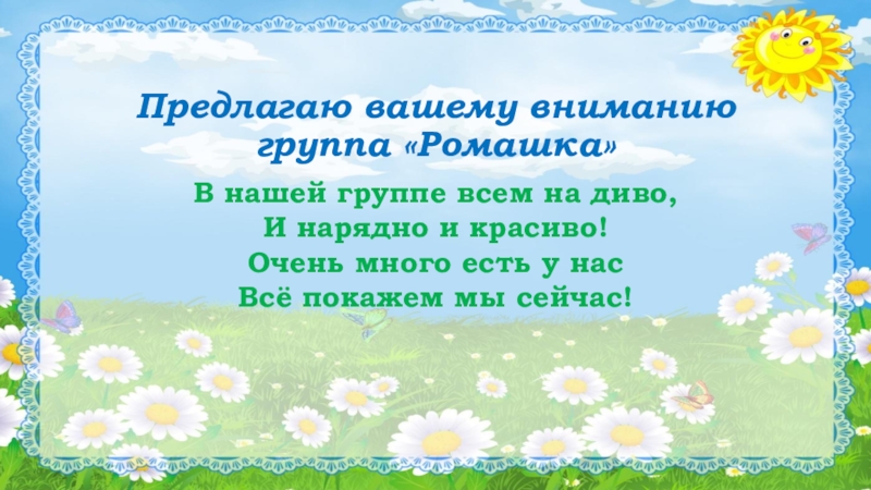 Слайд 7Предлагаю вашему вниманию группа «Ромашка»