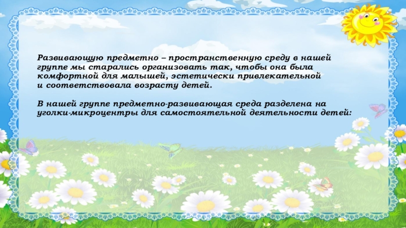 Слайд 6Развивающую предметно – пространственную среду в нашей группе мы старались организовать