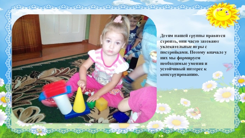 Слайд 32Детям нашей группы нравится строить, они часто затевают увлекательные игры с