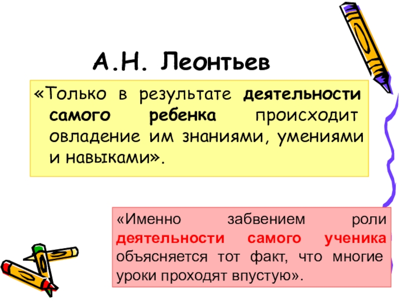 «Именно забвением роли деятельности самого ученика объясняется тот факт, что многие уроки проходят впустую».