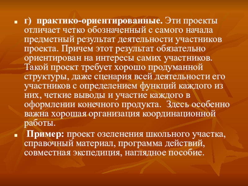 Слайд 11г) практико-ориентированные. Эти проекты отличает четко обозначенный с самого начала предметный