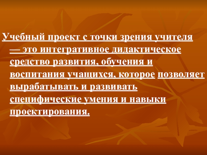 Учебный проект с точки зрения учителя — это интегративное дидактическое средство