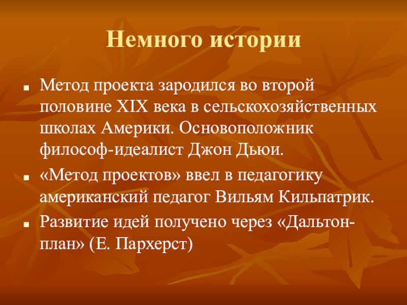 Метод проекта зародился во второй половине XIX века в сельскохозяйственных