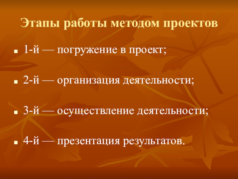 Слайд 15Этапы работы методом проектов