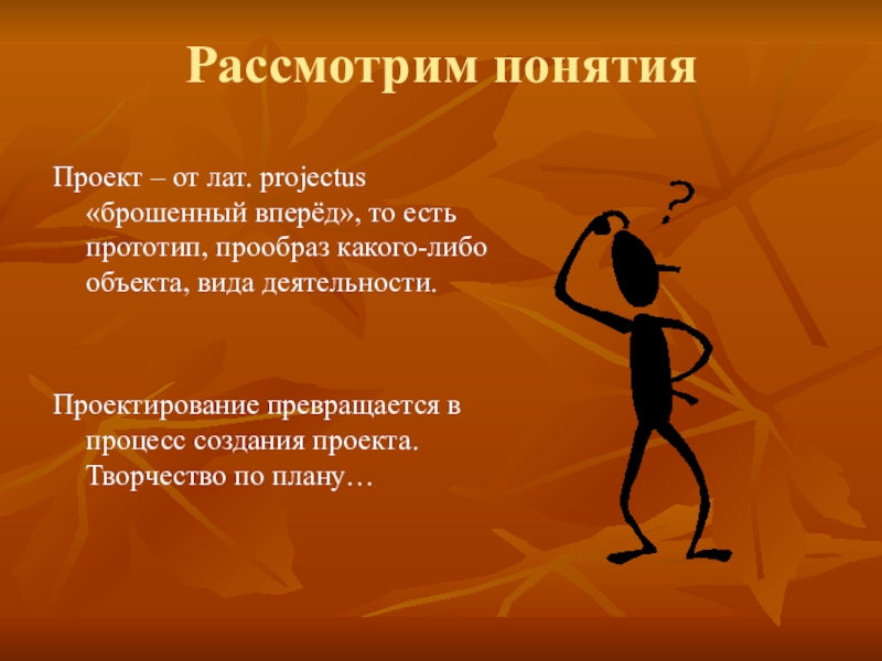 Проект – от лат. projectus «брошенный вперёд», то есть прототип,