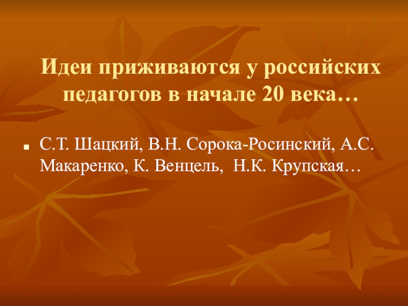 Слайд 5Идеи приживаются у российских педагогов в начале 20 века…