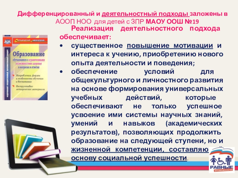 Слайд 5Дифференцированный и деятельностный подходы заложены в АООП НОО для детей с