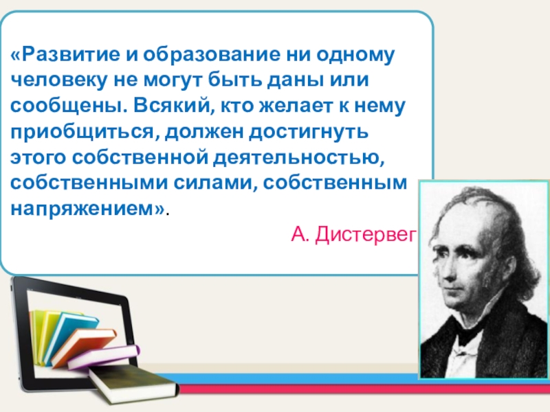 Слайд 2«Развитие и образование ни одному человеку не могут быть даны или