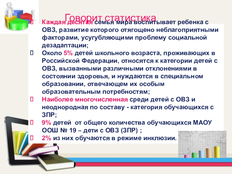 Около 5% детей школьного возраста, проживающих в Российской Федерации, относятся к категории детей с ОВЗ, вызванными различными отклонениями в состоянии здоровья, и нуждаются в специальном образовании, отвечающем их особым образовательным потребностям;