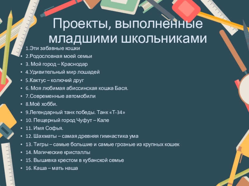 Это сайт презентаций, где можно хранить и обмениваться своими презентациями, докладами, проектами, шаблонами в формате PowerPoint с другими пользователями. Мы помогаем школьникам, студентам, учителям, преподавателям хранить и обмениваться учебными материалами.
