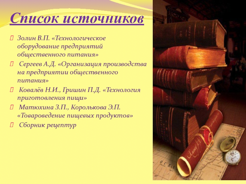 Золин В.П. «Технологическое оборудование предприятий общественного питания»