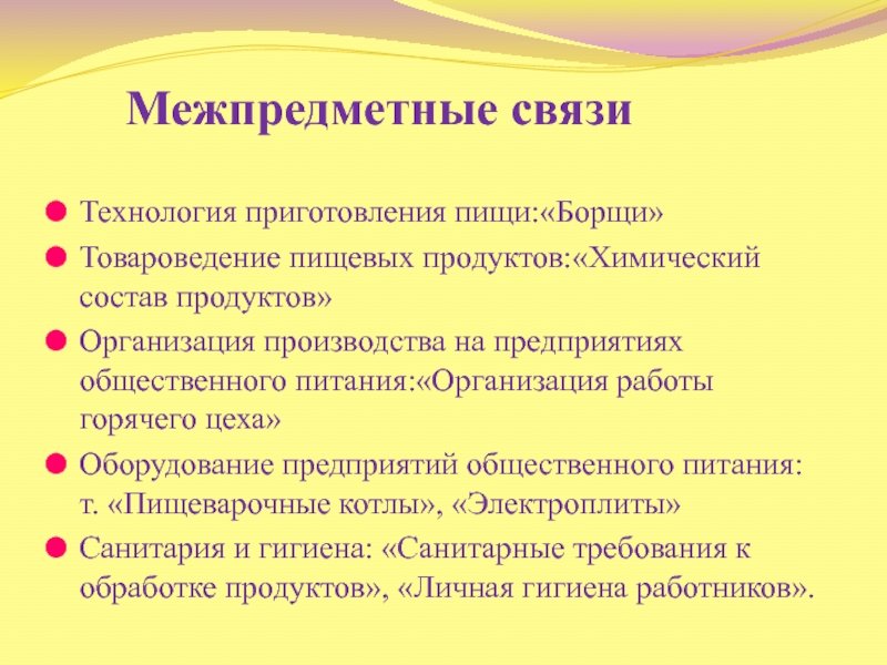 Санитария и гигиена: «Санитарные требования к обработке продуктов», «Личная гигиена работников».