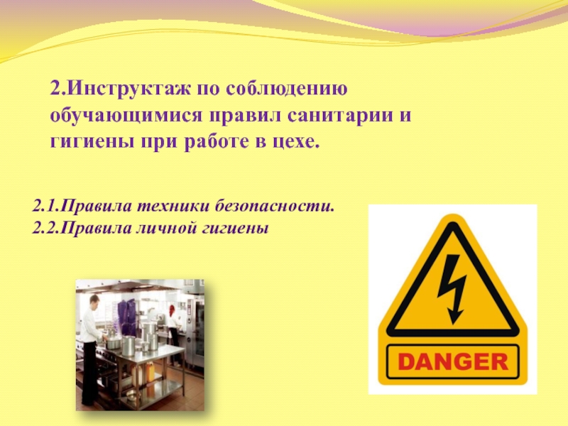2.Инструктаж по соблюдению обучающимися правил санитарии и гигиены при работе в