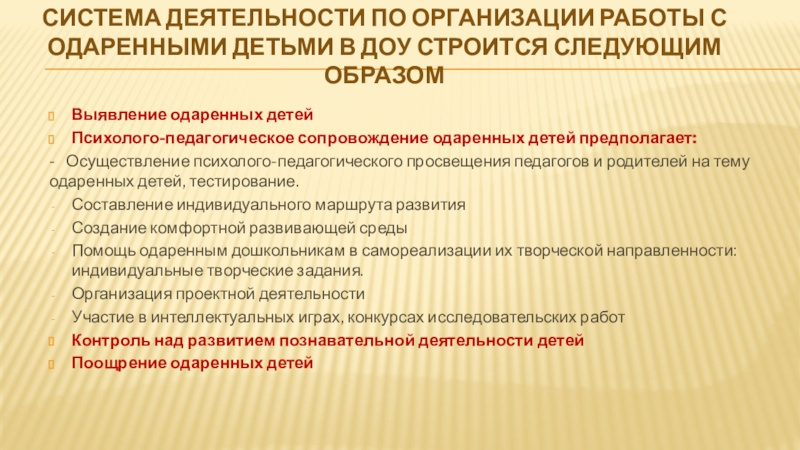 Психолого-педагогическое сопровождение одаренных детей предполагает: