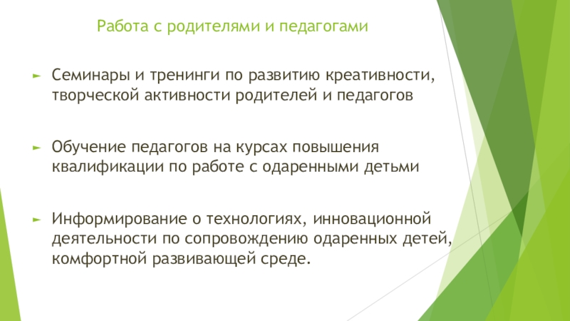 - Осуществление психолого-педагогического просвещения педагогов и родителей на тему одаренных детей, тестирование.