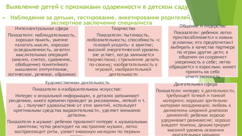 Наблюдение за детьми, тестирование, анкетирование родителей, экспертное заключение специалиста