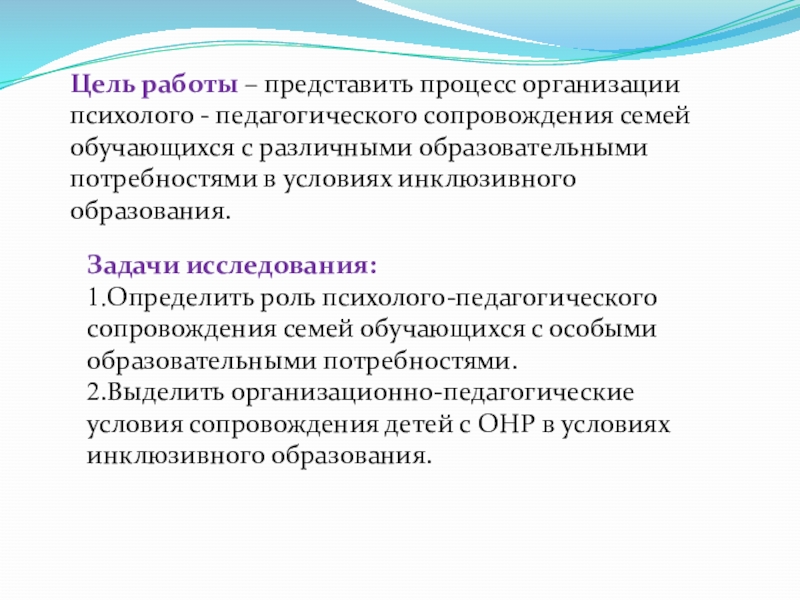 1.Определить роль психолого-педагогического сопровождения семей обучающихся с особыми образовательными потребностями.